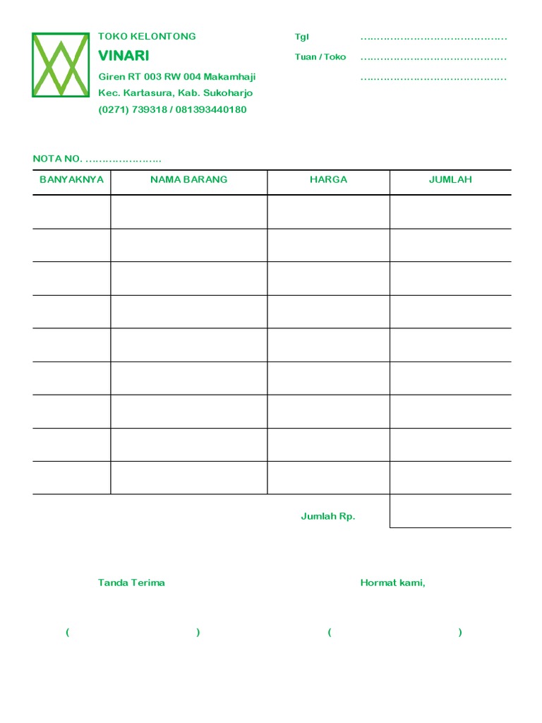 Desain faktur nota penjualan1solobarcode computama faktur jl. Dengan harga tersebut seseorang akan mendapat sewa tempat berupa warung untuk meembuka toko sembako. Download Contoh Nota Berbagai Toko Format CDR Bagi sobat yang hanya memerlukan contoh atau file desain nota yang bisa diedit silahkan download di bawah ini.